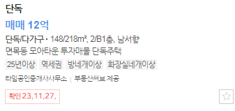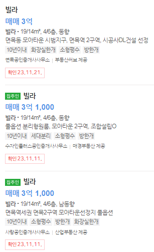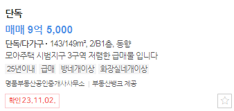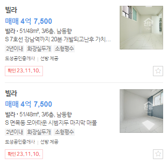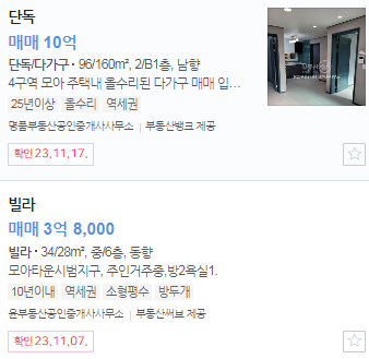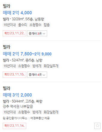 현재 네이버부동산에 올라와 있는 매물을 살펴보겠습니다.
