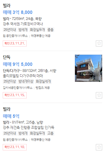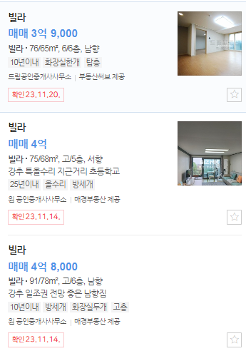 빌라 전용 9평(토지지분은 나와있지 않습니다)이 매매가 4억 3천만원에 나와있었습니다.
