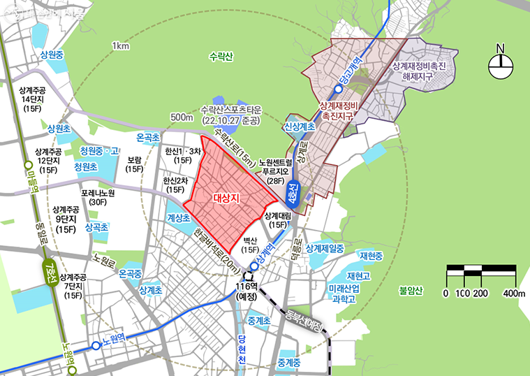 서울시는 인근 아파트 단지 재건축 시기가 도래한 것과, 상계재촉지구 개발 등 변화를 앞둔 시점이어서 개발 잠재력이 크다고 판단해 신통기획안을 마련했다고 설명했습니다.