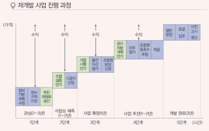 재개발은 다른 개발과 달리 일정 부분 공공 개발 성격을 가지고 있습니다. 보통 재개발 계획을 하는 쪽이 지방 정부이기 때문입니다. 쉽게 말해 건물만 새로 지으면 재건축이고, 낙후된 동네 전체를 도로와 상하수도 등 기반시설까지 모두다 다시 지으면 재개발입니다..